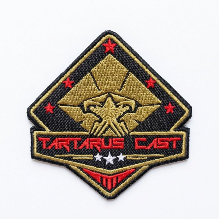 Vyšívaná nášivka Tartarus Cast s výrazným geometrickým motivem v taktickém stylu. Kombinace černé, zlaté a červené dodává nášivce ostrý a moderní vzhled.